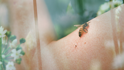 The home gardens, prairies, orchard, woodlands where the artist, Cherie Sampson, lives set the mise-en-scène for a series of self-administered honeybee “stinging rituals” over a period of several months in 2021. A team of Australian researchers recently discovered that the active substance in honeybee venom, melittin, has demonstrated a capacity to induce cell death in two types of aggressive breast cancers: triple-negative and HER2. As a survivor of TNBC, Sampson engaged this symbolic act, calling attention to the need for more natural or other forms of cancer therapy that may one day offer alternatives to toxic treatments. Footage of the foraging patterns of honeybees and other native pollinators of the Midwest that illustrate the diverse life in healthy ecosystems are juxtaposed with images of the stinging rites.