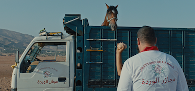 In the desert, a lone rider approaches at full gallop. His old, tired horse is not convincing. Let's do the scene again. Still not convincing. What are we going to do with this horse?